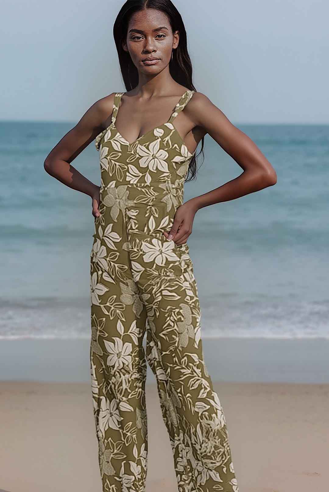 Emerald Bloom Spaghetti Strap Jumpsuit